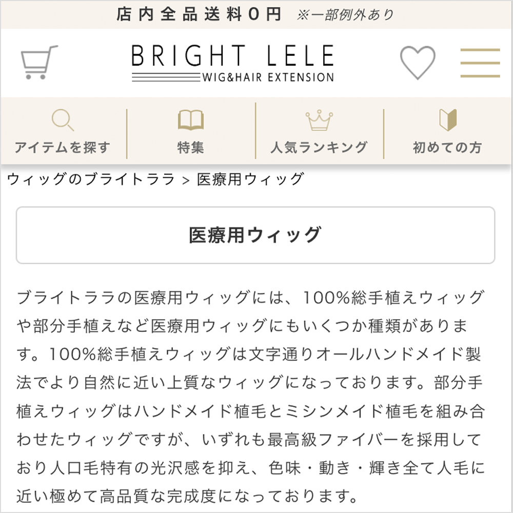 インターネットで見るのと実際に試着してみるのとではイメージが違うことも。 中には無料で試着できるサービスもあります。 営業の電話が気になる方は、そういった営業電話のないサービスがないところを選ぶと安心ですね。部門別ランキング:医療用ウィッグの質ランキング
