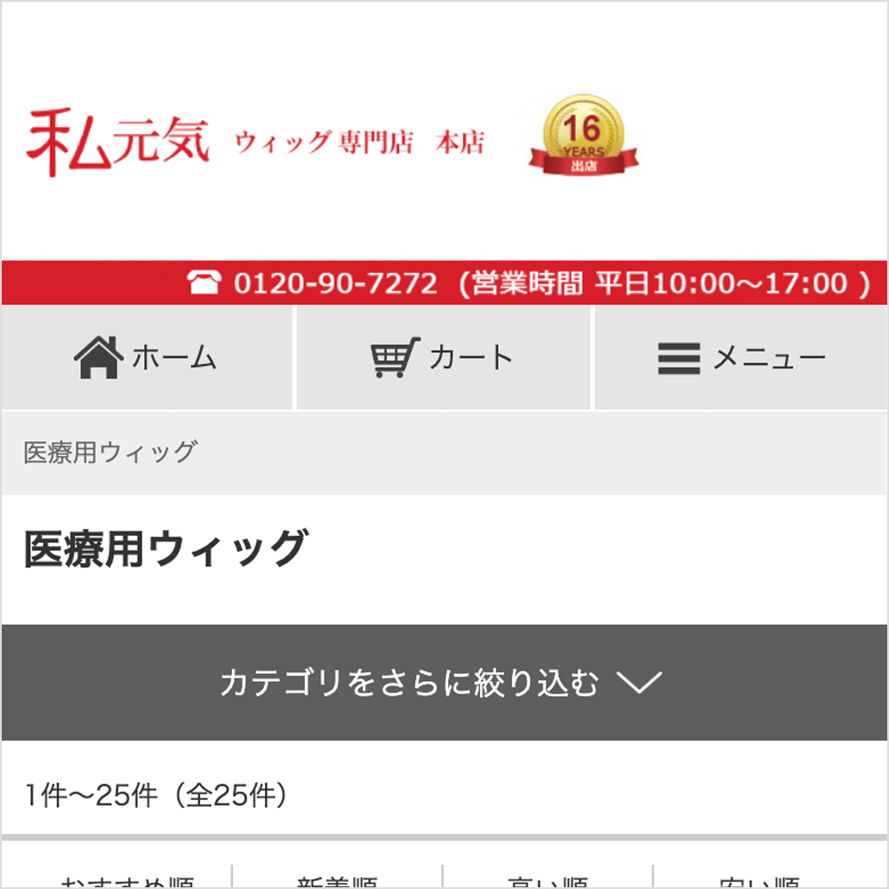 刺激の少ないお肌にやさしい素材を使用した医療ウィッグ